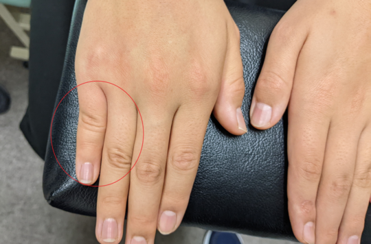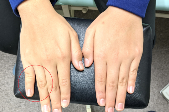 整復後には正しく小指が閉じれるようになった様子が分かります。(整復後画像)