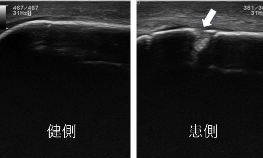 肘の後方に著明な腫脹を認め肘頭骨折が疑われた。