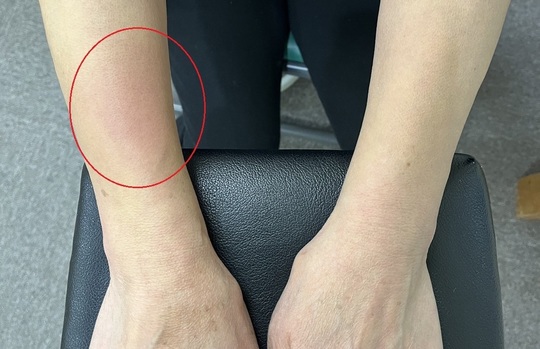 右手をよく使うお仕事で急に強い痛みと発赤、腫脹がみられた方です。