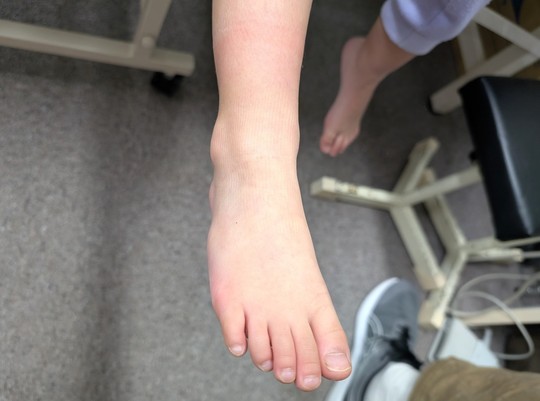 右足が患側。高度の腫脹がみられる。