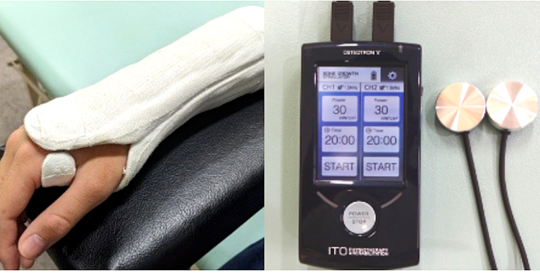 ギプス固定などの固定と併用して継続して使用することで骨折部の治癒を早めることを可能にします。