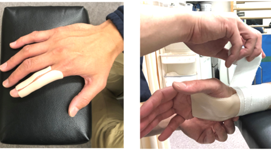 特に外傷においては固定が必要な場合が多く、受傷初期にしっかりとした固定を行うことは痛みの軽減や組織の回復を早め、結果的にスポーツ復帰を早めます。