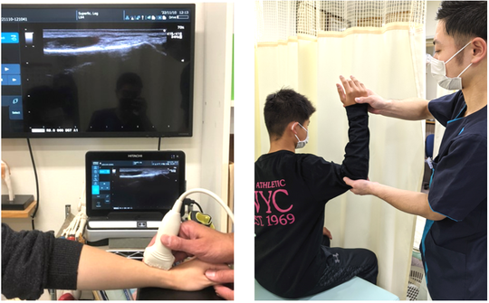 痛みの原因を問診・視診・触診・徒手検査法に加え超音波観察装置(エコー)を用いて正確に判断します。