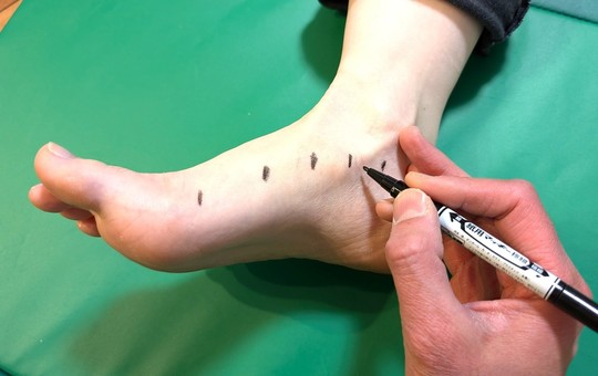 足の関節位置をマーキング