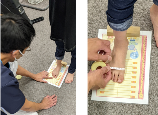 お子様の足や歩行が気になる方のチェックを行います。また靴のサイズが分からない方のチェックも行います。